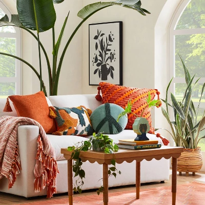 Refresh your living room or seating space with this Beaded Peace Sign Round Throw Pillow from Opalhouse™ designed with Jungalow™. This decorative round pillow showcases a beaded peace sign in a solid color over a velvet background in a matching lighter shade for an eye-catching look. Featuring a 100% cotton exterior and a well-filled interior, the novelty throw pillow adds the right amount of comfort and instantly lifts the mood of your space, whether you use it solo or in combination with other square and rectangular pillows.
